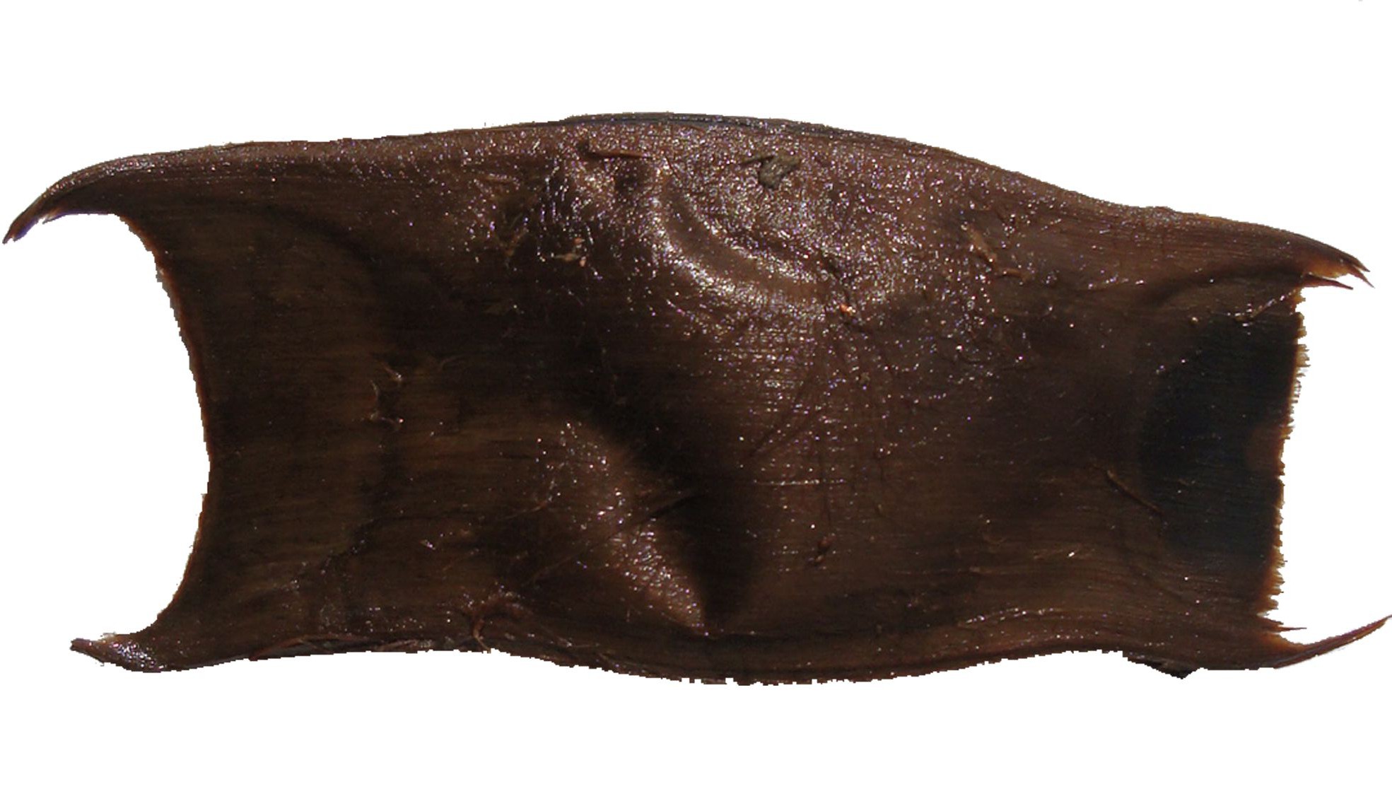• ressemble beaucoup à la capsule de raie bouclée mais est beaucoup plus petite et ne possède pas d’aileron basal.